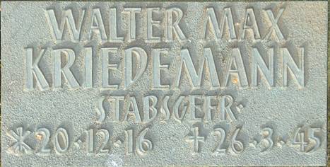 Dienstgrad : Stabsgefreiter Nationalität : deutsch Geburtsdatum : 20.12.1916 Geburtsort : Berlin Todesdatum : 26.3.1945 Todesort : Welterod